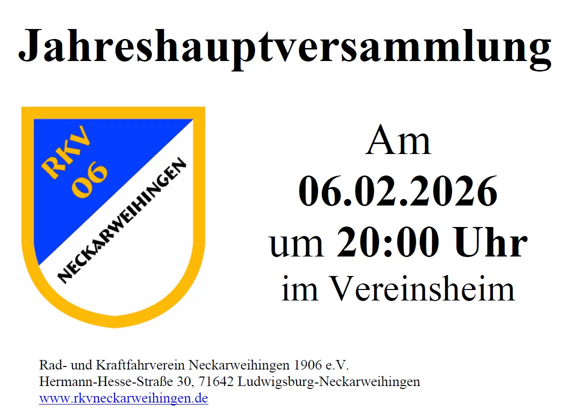 Herzlich willkommen auf den neuen Internetseiten des Rad- und Kraftfahrvereins Neckarweihingen. Hier geben wir Ihnen einen Einblick in die Arbeit der einzelnen Abteilungen des Vereins. Bei Interesse oder Fragen können Sie sich an die jeweiligen Leiter der Abteilungen wenden. Die Kontaktdaten zur Abteilungsleitung und den Trainern bzw. Leitern finden Sie auf den Abteilungsseiten. Gerne würden wir Sie bei uns begrüßen und freuen uns über jedes neue Vereinsmitglied.
